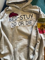 Stand out from the rest in this Boblo Picazzo exclusive. This one-of-a-kind custom hoodie is an ode to Radio Raheem from Do The Right Thing by Spike Lee. There's a Hemp Lion of the Tribe of Judah pocket on the left sleeve. African wax block print patch sewn into the left chest. Vintage t-shirt elements sewn into the font and back of the hoodie. The hoodie itself is brand new size XL.